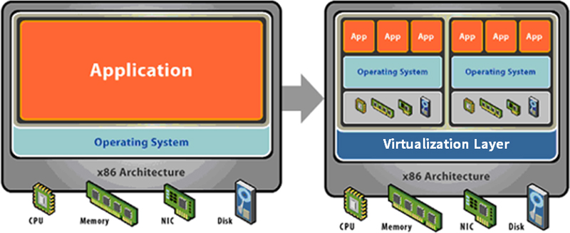 - 데이터센터 내의 수십 대의 물리적인 서버 워크로드들을 몇 대의 가상 서버로 통합 집적(Consolidation)하여 물리적인 상면 비용, 관리적인 측면의 비용, Green IT 측면의 전력량을 포함한 서버 자원 활용도를 증대 시킬 수 있음